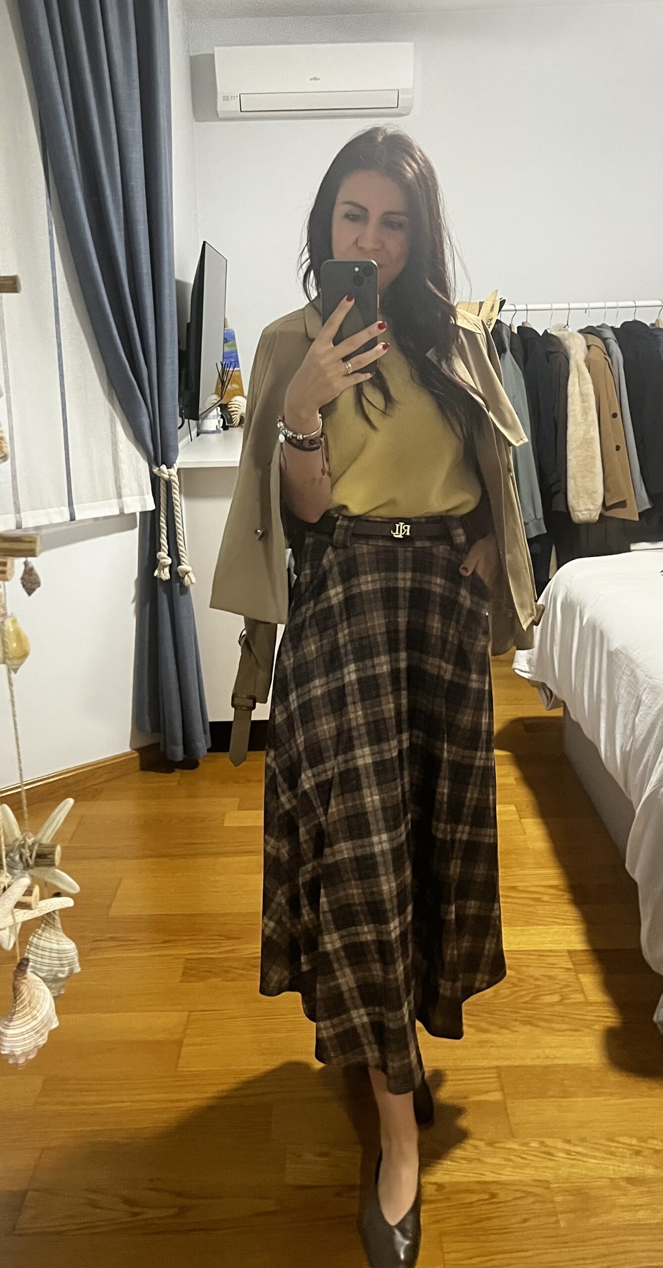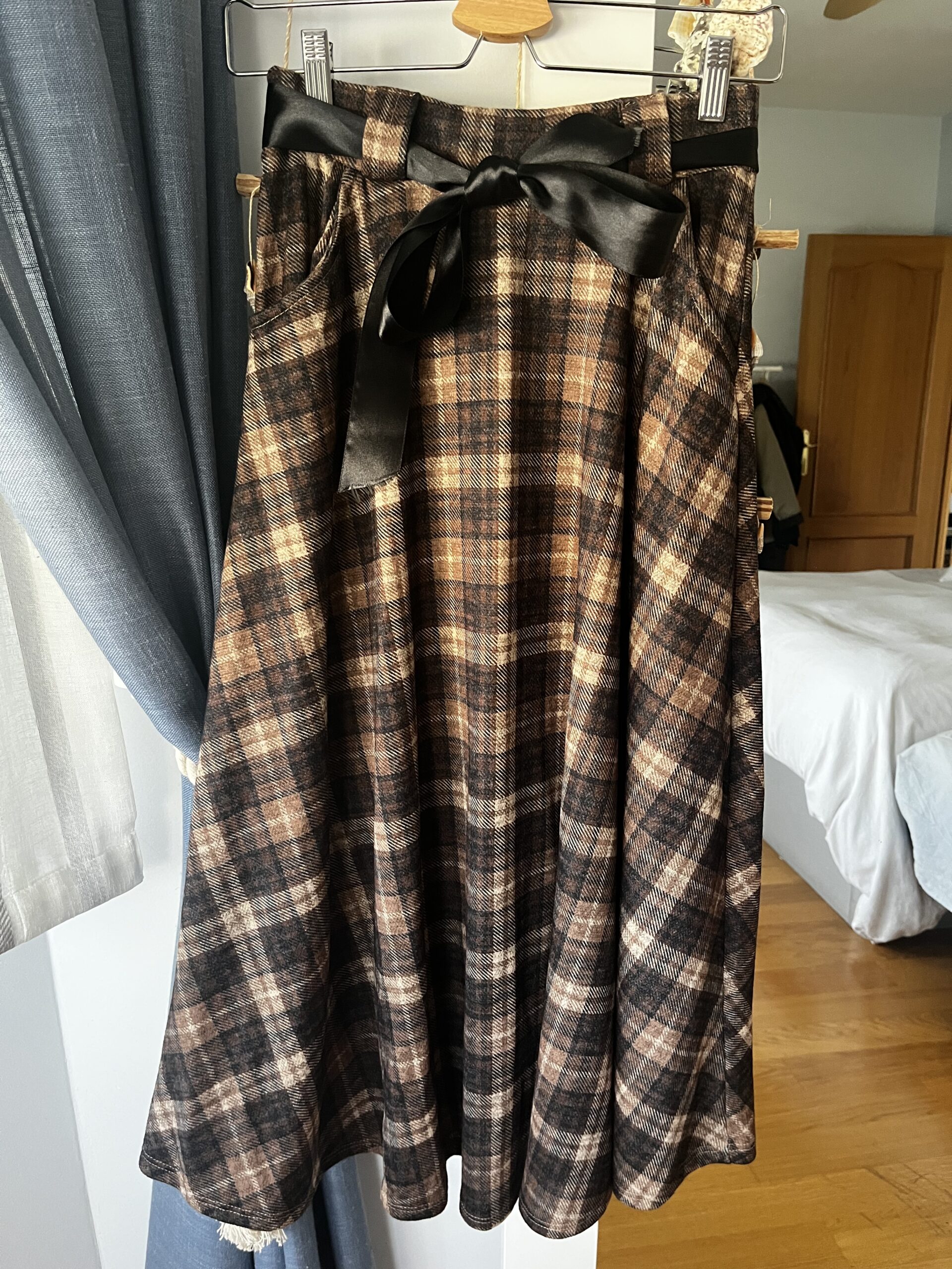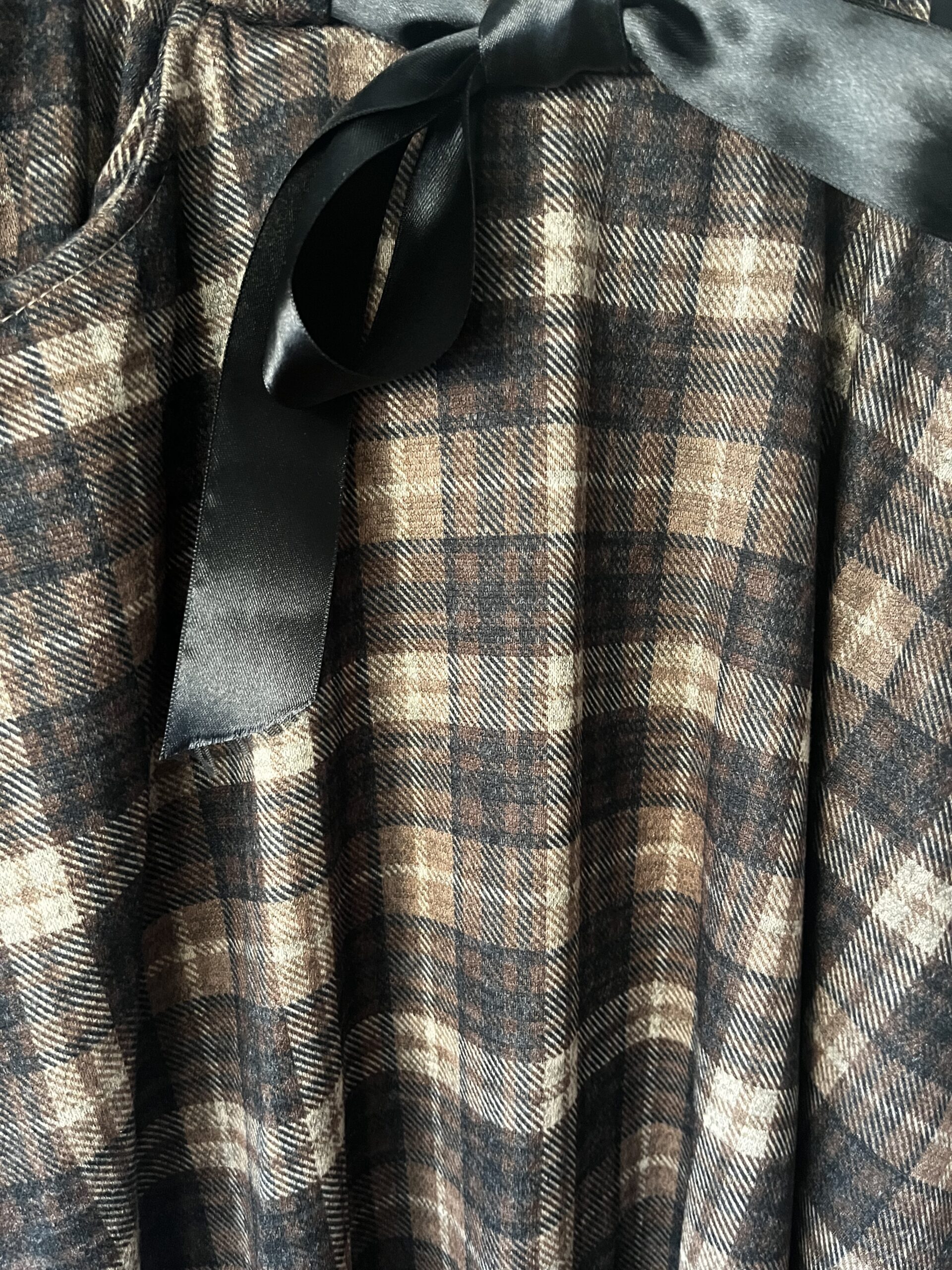 Falda midi Harry de cuadros, bolsillos delanteros, lazo en raso negro. Talla única 34/40