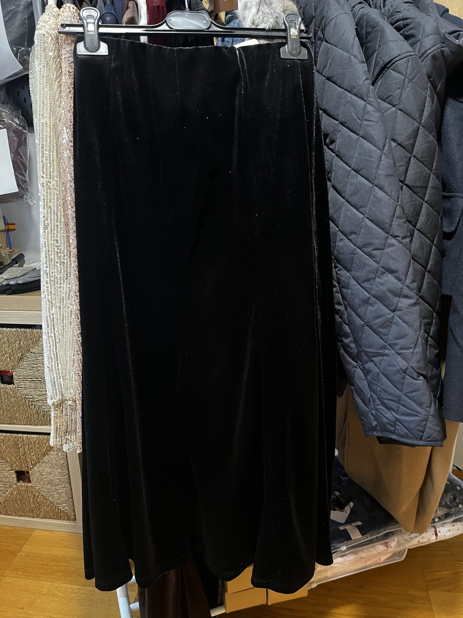 Falda negra terciopelo. Elástico en cintura, vuelo. Talla única (34/40)